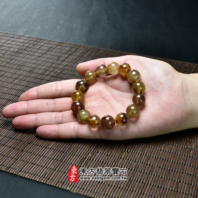 商品名稱:髮晶手鍊(髮晶珠子,珠徑約13mm,OFJ155) 客製化設計各種髮晶珠串、髮晶珠子、髮晶手珠。★附東方翡翠寶石保證卡