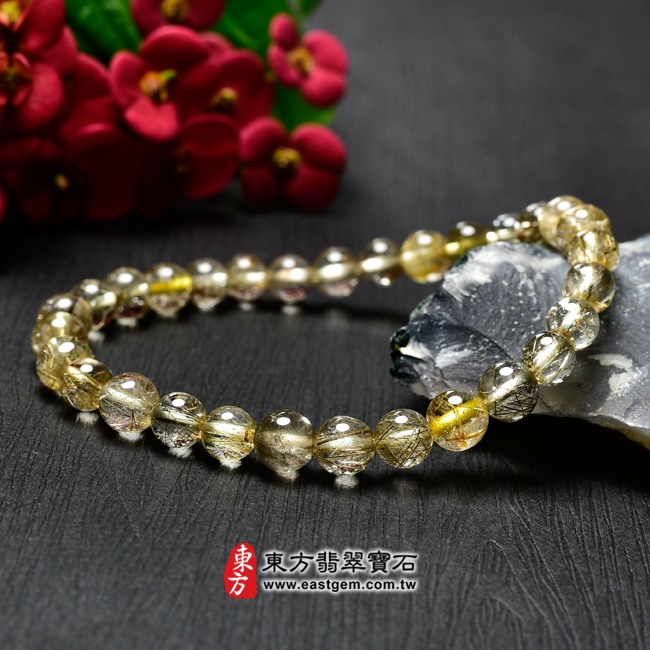 商品名稱:髮晶手鍊(髮晶珠子,珠徑約6~6.5mm,OFJ255) 客製化設計各種髮晶珠串、髮晶珠子、髮晶手珠。★附東方翡翠寶石保證卡