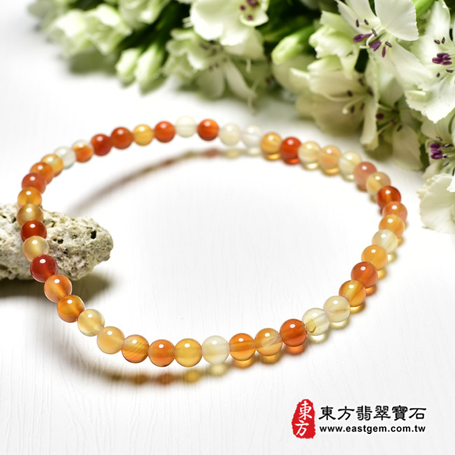 商品名稱:(已出售勿下標,可訂做)橘白瑪瑙手鍊(橘白瑪瑙珠子,珠徑約4mm,OML145) 客製化設計各種橘白瑪瑙珠串、橘白瑪瑙珠子、橘白瑪瑙手鍊、橘白瑪瑙手珠。★附東方翡翠寶石保證卡