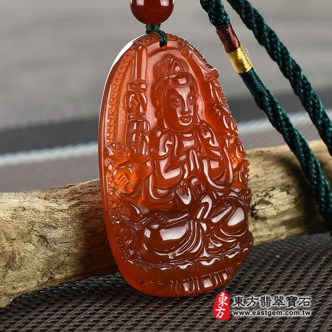 商品名稱:紅瑪瑙千手觀音項鍊玉珮(千手觀音:千手觀音牌瑪瑙千手觀音玉珮、玉髓千手觀音玉墜)。紅色瑪瑙玉髓千手觀音,LH048。客製化訂做各種瑪瑙玉髓千手觀音吊墜玉珮項鍊。★附東方翡翠寶石保證卡