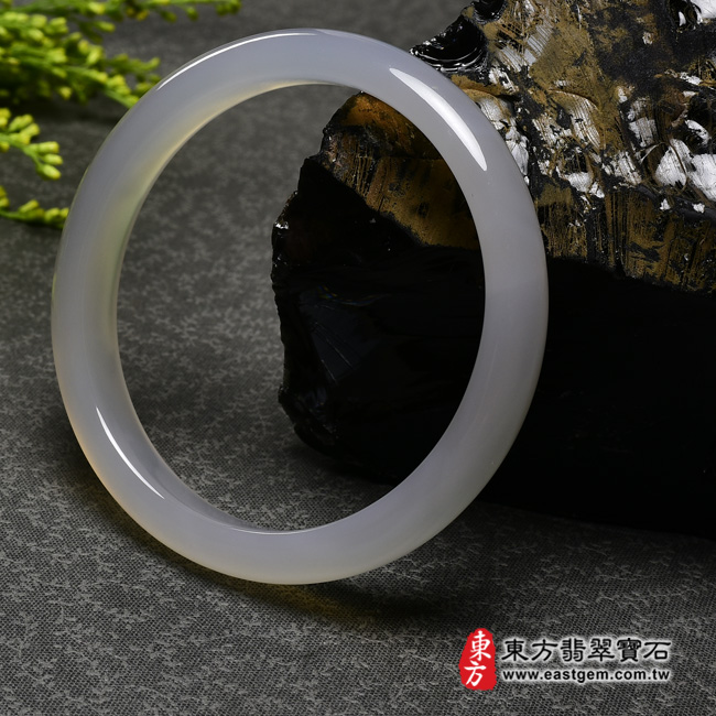 商品名稱:白玉髓手鐲、白瑪瑙手鐲。(透白,圓鐲18.5,TW002)。客製化訂做各種白玉髓手鐲、白瑪瑙手鐲。★附東方翡翠寶石證書