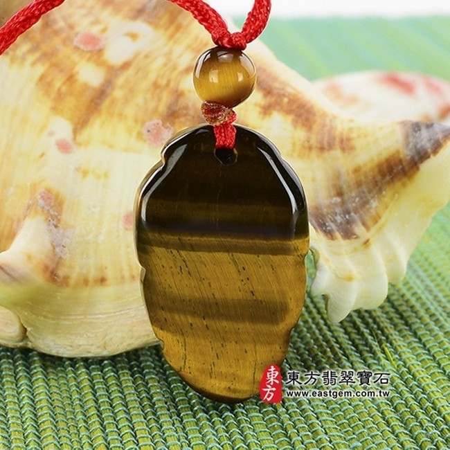 這一款吊墜是「黃虎眼石」的材質,屬於半寶石、又稱虎睛石,表面具有絹絲光澤、質地堅硬,顏色多樣化有黑色、黃色、金褐色條紋相間,紋路多樣化,各有特色。黃虎眼石、黃色,有著「尊貴、明亮」的寓意,期許配戴者在事業上能加強本身具有的領導力、企圖心、穩定度,以及積極、正面的思考方式,更期望能為配戴者帶來財富。虎眼石顧名思義,就像是森林之王老虎的眼睛一般,呈現出霸氣淩厲的氣勢。從古至今,流傳著虎眼石有著辟邪招財的功效,男士配戴虎眼石,祝福他們事業蒸蒸日上。女士配戴期許她們堅定心志、獨立自主。