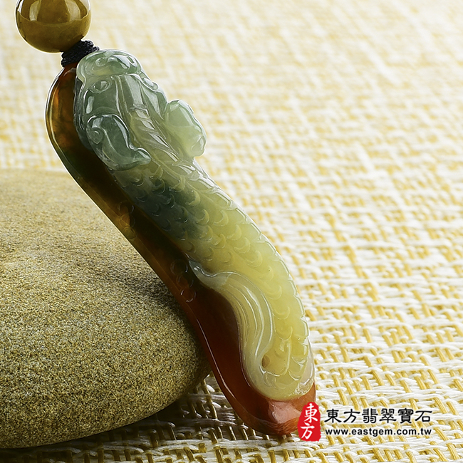 此吊墜的龍頭魚,身軀矯健有形,魚鱗被鉅細靡遺的刻出,精雕細琢,巧奪天工。「龍頭魚」造型玉墜有著特殊的寓意,它象徵節節高升,學生配戴龍頭魚吊墜,護祐學業步步高升、鵬程萬里,生意人配戴龍頭魚吊墜,護佑其事業磅礡成長、無邊無際。