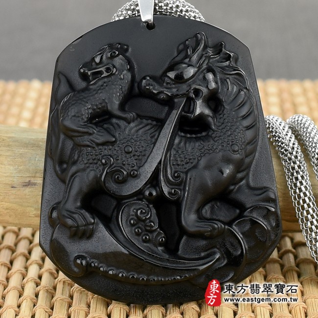 商品名稱:黑曜石麒麟項鍊玉珮(神獸獻瑞:麒麟牌黑曜石麒麟玉珮、黑曜石麒麟玉墜)。黑曜石麒麟,CL043。客製化訂做各種黑曜石麒麟吊墜玉珮項鍊。★東方翡翠寶石保證卡