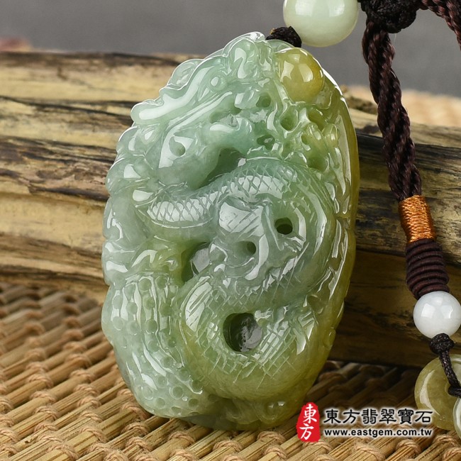 商品名稱:(已出售勿下標,可訂做)翡翠龍項鍊玉珮(祥龍瑞氣、招財富貴龍:龍牌A貨翡翠龍玉珮、緬甸玉龍玉墜、龍十二生肖項鍊)。綠色糯種帶黃翡翠龍,DR309。客製化訂做各種翡翠龍吊墜玉珮項鍊。★附A貨翡翠雙證書