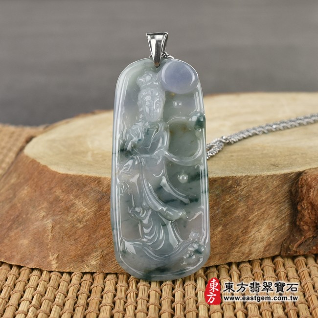商品名稱:翡翠觀世音菩薩項鍊玉珮(觀世音菩薩,一葉觀音:觀世音菩薩牌A貨翡翠觀世音菩薩玉珮、緬甸玉觀世音菩薩玉墜)。糯種春帶彩帶飄綠花觀世音菩薩,GY698。客製化訂做各種翡翠觀世音菩薩吊墜玉珮項鍊。★附A貨翡翠雙證書