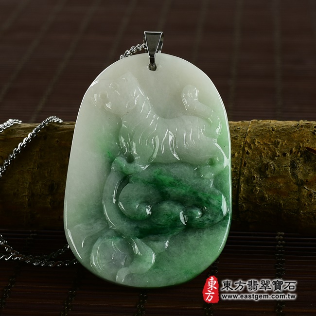 這一只吊墜是翡翠分級裡面,屬於「白底青細豆種」的種地。內部結構綿密。玉墜色澤渾厚飽滿,表面有著油亮感,使的玉墜整體線條更加鉅細靡遺,所雕之物栩栩如生,玉墜的手感溫潤細緻,內裡和隨,有著獨特朦朧美,讓人眼睛為之一亮。這只玉墜色調清新亮麗,淡白的色澤的色澤如細雪般,瑩白潔淨,白底的玉墜中帶有嫩綠色飄花,宛如初春新芽,生機盎然,讓人不自覺心生希望。