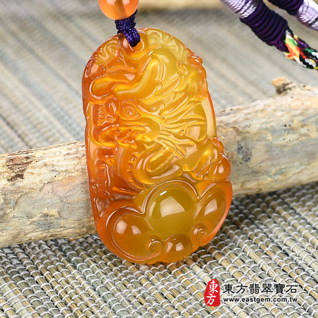 商品名稱:(已售出勿下標,可訂做)瑪瑙龍項鍊玉珮(如意龍:龍牌瑪瑙龍玉珮、玉髓龍玉墜、龍十二生肖項鍊)。黃帶橘瑪瑙玉髓龍,DR357。客製化訂做各種瑪瑙玉髓龍吊墜玉珮項鍊。★附東方翡翠寶石保證卡