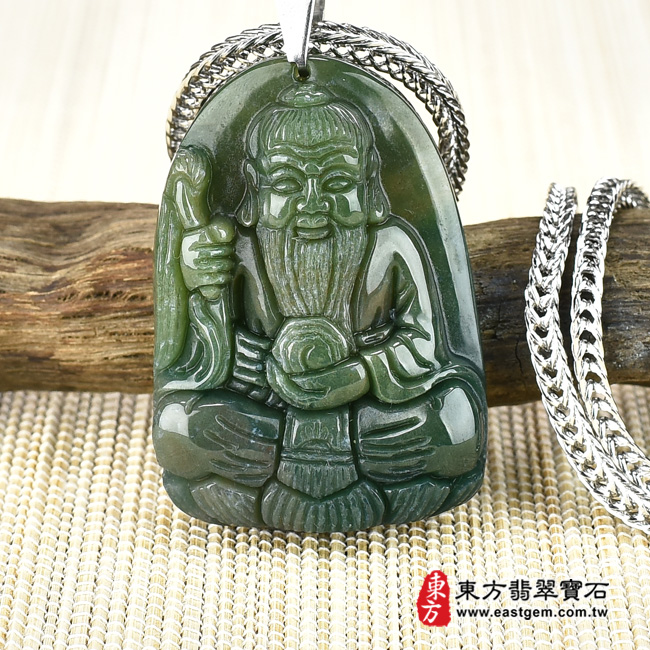 商品名稱:水草玉太上老君項鍊玉珮(道德天尊:太上老君牌水草玉太上老君玉珮、水草玉太上老君玉墜)。深綠色水草玉太上老君,KN070。客製化訂做各種水草太上老君吊墜玉珮項鍊。★附東方翡翠寶石保證卡
