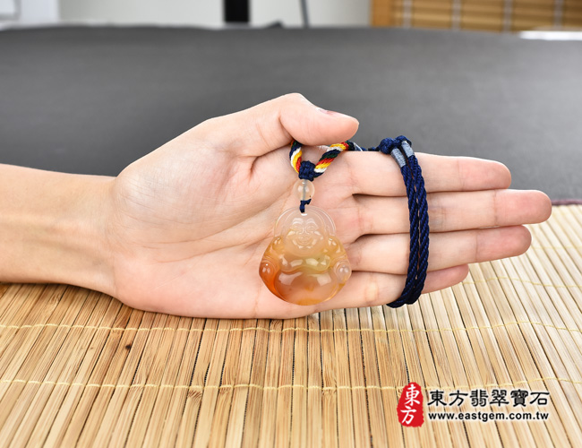 商品名稱:(已出售勿下標,可訂做)瑪瑙彌勒佛項鍊玉珮(彌勒佛:彌勒佛牌瑪瑙彌勒佛玉珮、玉髓彌勒佛玉墜)。白帶橘瑪瑙玉髓彌勒佛,ML208。客製化訂做各種瑪瑙玉髓彌勒佛吊墜玉珮項鍊。★附東方翡翠寶石保證卡