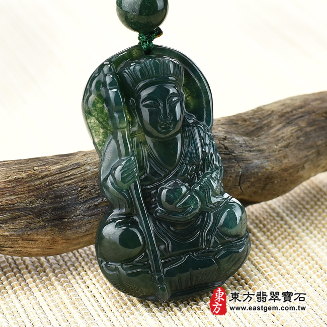 商品名稱:水草玉地藏王菩薩項鍊玉珮(地藏王菩薩:地藏王菩薩牌水草玉地藏王菩薩玉珮、水草玉地藏王菩薩玉墜)。墨綠水草玉地藏王菩薩,DY051。客製化訂做各種水草玉地藏王菩薩吊墜玉珮項鍊。★附東方翡翠寶石保證卡