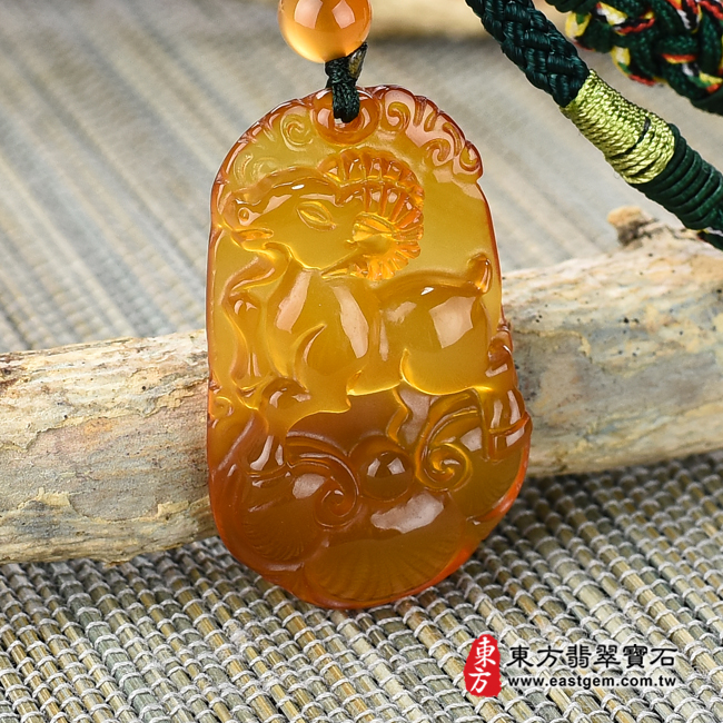 商品名稱:瑪瑙羊項鍊玉珮(羊眉吐氣、洋洋如意:羊牌瑪瑙羊玉珮、玉髓羊玉墜、羊十二生肖項鍊)。黃瑪瑙玉髓羊,GO035。客製化訂做各種瑪瑙玉髓羊吊墜玉珮項鍊。★附東方翡翠寶石保證卡