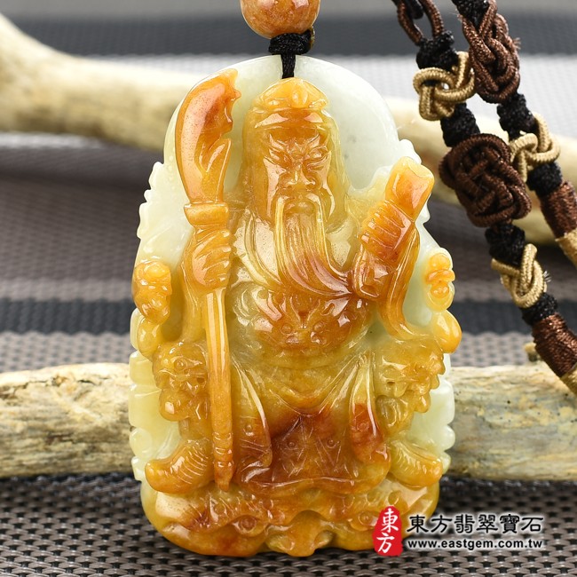 商品名稱:(已出售勿下標,可訂做)翡翠關公項鍊玉珮(關聖帝君:關公牌A貨翡翠關公玉珮、緬甸玉關公玉墜)。白綠色糯種帶黃翡翠關公,KG194。客製化訂做各種翡翠關公吊墜玉珮項鍊。★附A貨翡翠雙證書