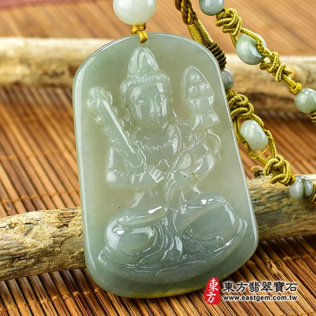 商品名稱:翡翠虛空藏菩薩項鍊玉珮(虛空藏菩薩:虛空藏菩薩牌A貨翡翠虛空藏菩薩玉珮、緬甸玉虛空藏菩薩玉墜)。淡綠色糯種虛空藏菩薩,GY784。客製化訂做各種翡翠虛空藏菩薩吊墜玉珮項鍊。★附A貨翡翠雙證書