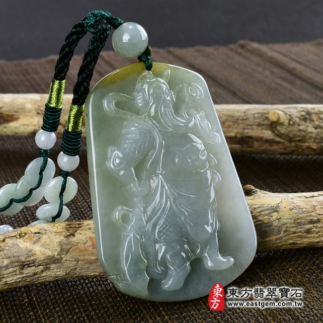 商品名稱:翡翠關公項鍊玉珮(關聖帝君、關公:關公牌A貨翡翠關公玉珮、緬甸玉關公玉墜)。淡綠色糯種帶黃翡關公,KG326。客製化訂做各種翡翠關公吊墜玉珮項鍊。★附A貨翡翠雙證書