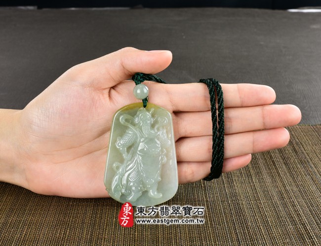 商品名稱:(已出售勿下標,可訂做)翡翠關公項鍊玉珮(關聖帝君、關公:關公牌A貨翡翠關公玉珮、緬甸玉關公玉墜)。淡綠色糯種帶黃翡關公,KG326。客製化訂做各種翡翠關公吊墜玉珮項鍊。★附A貨翡翠雙證書