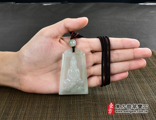 商品名稱:翡翠觀音項鍊玉珮(觀世音菩薩、寶瓶觀音:觀音牌A貨翡翠觀音玉珮、緬甸玉觀音玉墜)。淡綠色糯種帶微冰觀音,GY1024。客製化訂做各種翡翠觀音吊墜玉珮項鍊。★附A貨翡翠雙證書