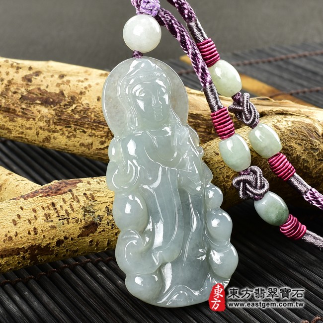 商品名稱:翡翠觀音項鍊玉珮(觀世音菩薩、寶瓶觀音:觀音牌A貨翡翠觀音玉珮、緬甸玉觀音玉墜)。白綠色糯種觀世音菩薩,GY1040。客製化訂做各種翡翠觀音吊墜玉珮項鍊。★附A貨翡翠雙證書