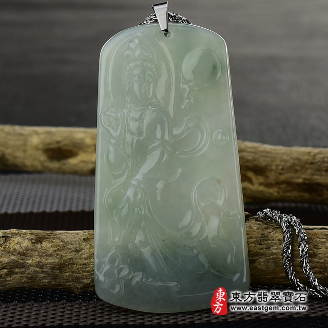 商品名稱:翡翠觀世音菩薩項鍊玉珮(觀世音菩薩、寶瓶觀音:觀世音菩薩牌A貨翡翠觀世音菩薩玉珮、緬甸玉觀世音菩薩玉墜)。淡綠色糯種觀世音菩薩,GY1021。客製化訂做各種翡翠觀世音菩薩吊墜玉珮項鍊。★附A貨翡翠雙證書