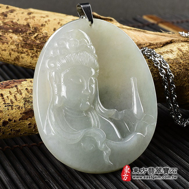 商品名稱:翡翠觀世音菩薩項鍊玉珮(觀世音菩薩:觀世音菩薩牌A貨翡翠觀世音菩薩玉珮、緬甸玉觀世音菩薩玉墜)。淡綠色糯種觀世音菩薩,GY1051。客製化訂做各種翡翠觀世音菩薩吊墜玉珮項鍊。★附A貨翡翠雙證書
