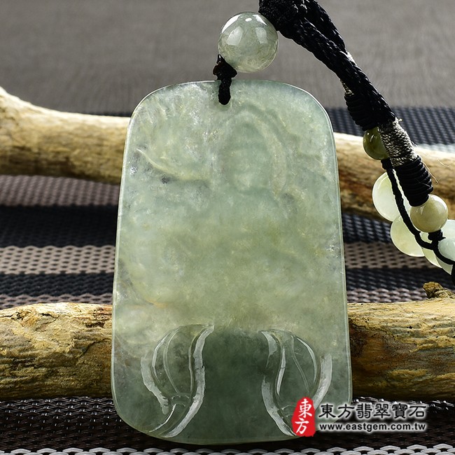 商品名稱:翡翠觀世音菩薩項鍊玉珮(觀世音菩薩、乘龍觀音:觀世音菩薩牌A貨翡翠觀世音菩薩玉珮、緬甸玉觀世音菩薩玉墜)。淡綠色糯冰種觀世音菩薩,GY1107。客製化訂做各種翡翠觀世音菩薩吊墜玉珮項鍊。★附A貨翡翠雙證書