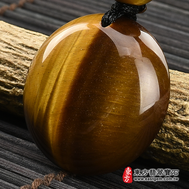 商品名稱:虎眼石蛋面項鍊玉珮(圓形蛋面:蛋面牌虎眼石蛋面玉珮、虎眼石蛋面玉墜)。黃虎眼石蛋面,EG047。客製化訂做各種虎眼石蛋面吊墜玉珮項鍊。★東方翡翠寶石保證卡