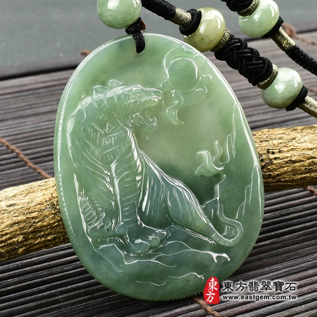 商品名稱:翡翠虎項鍊玉珮(虎虎生風:虎牌A貨翡翠虎玉珮、緬甸玉虎玉墜、虎十二生肖項鍊)。綠色糯種虎,TR103。客製化訂做各種翡翠虎吊墜玉珮項鍊。★附A貨翡翠雙證書