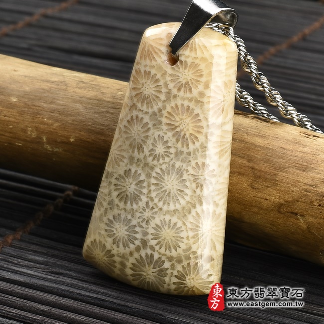 商品名稱:菊花石梯形項鍊玉珮(梯形牌菊花石玉珮、菊花石梯形玉墜)。菊花石梯形,EG140。客製化訂做各種菊花石梯形吊墜玉珮項鍊。★東方翡翠寶石保證卡